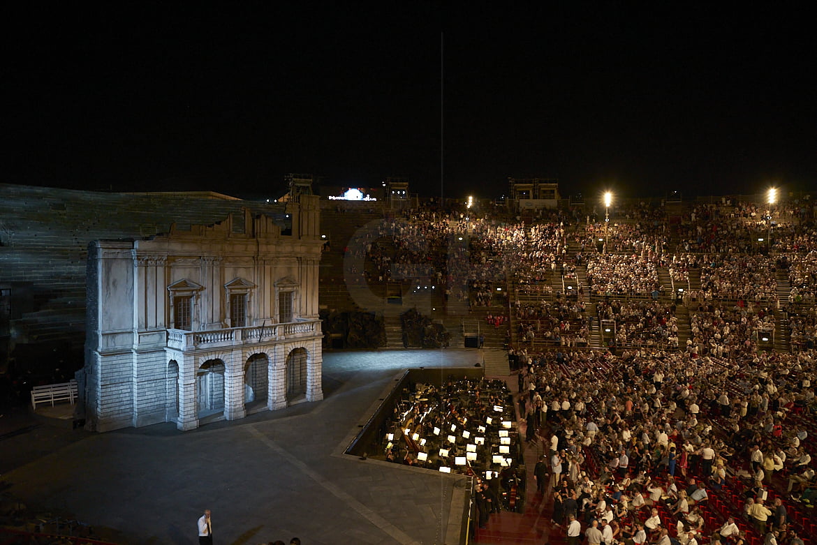 Verdi’s Nabucco, famous for its stirring choruses and dramatic narrative of exile and hope, has become a highlight of the Arena’s summer opera festival. This image showcases not only the monumental scale of the stage set but also the emotional intensity that resonates through the audience of up to 15,000 spectators. The production’s rich visual elements and the powerful ensemble cast bring the ancient story to life in a truly immersive experience.