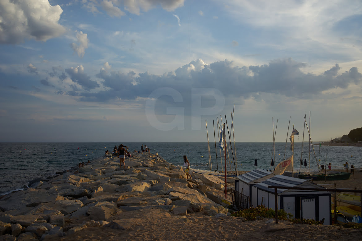 People playing next to Sant Pol de Mar’s beach. The sunset is coming.